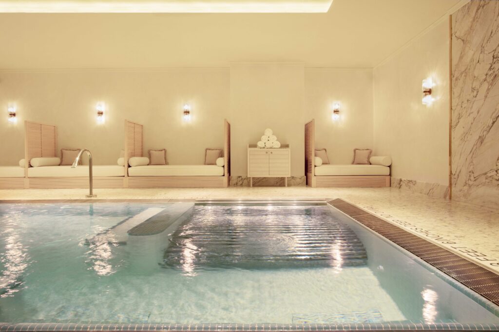 The hotel’s tranquil Spa Diane Barrière is an intimate oasis with a relaxation pool featuring a range of bubbling functions, a steam room, sauna and daybeds luring blissed out nappers. Home to just five treatment rooms and a beautifully edited menu of massages, facials and body treatments making liberal use of Biologique Recherche products, it’s an unquestionably luxurious experience. On my visit, I enjoyed Fouquet’s Signature Massage, a customizable therapy including lymphatic drainage.